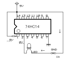 CMOSで インバーター(NOT)ICの 74HC14 を使用します。